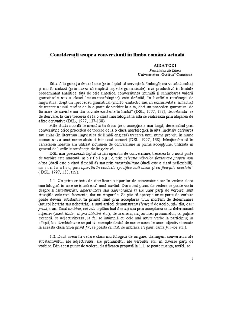 1.2. Dac avem n vedere clasa morfologic de origine, distingem conversiuni ale