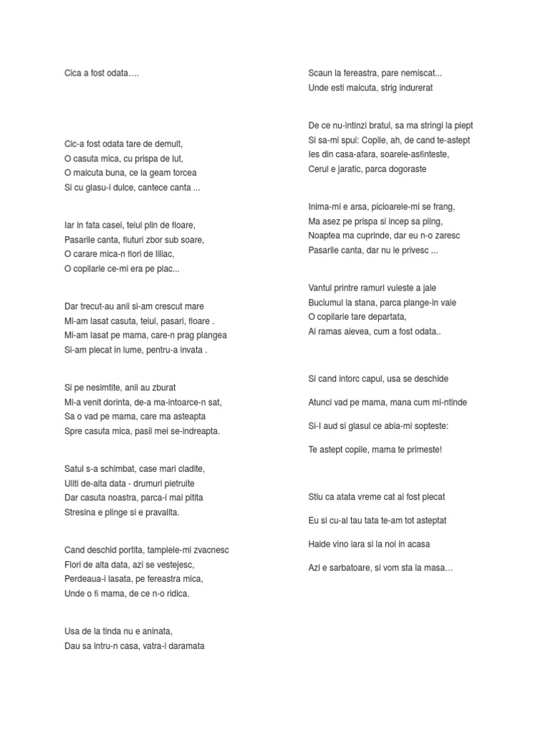 Mi-am lasat pe mama, care-n prag plangea Ai ramas aievea, cum a fost odata..