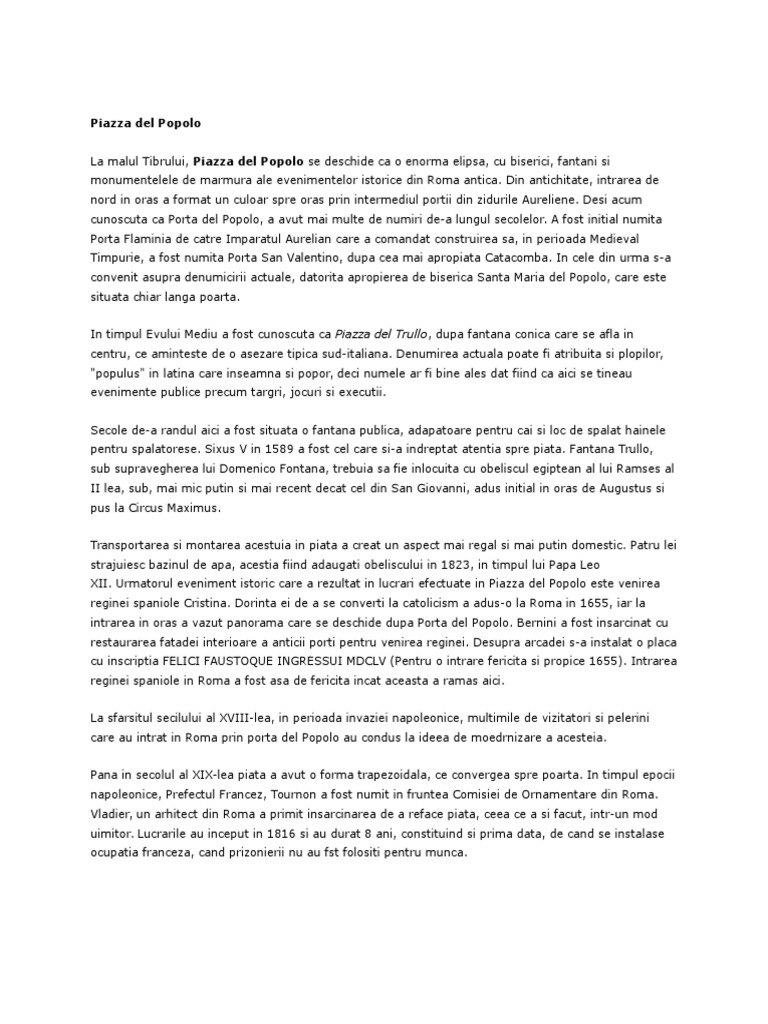 care au intrat in Roma prin porta del Popolo au condus la ideea de moedrnizare a acesteia.