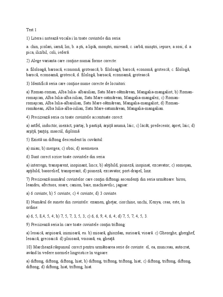 7) Precizeaz numrul cuvintelor care conin diftongi ascendeni din seria urmtoare: birou,