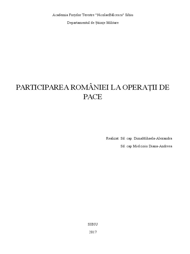1Cernat Romic, "Operaiile de meninere a pcii i Dreptul Internaional Umanitar" la: