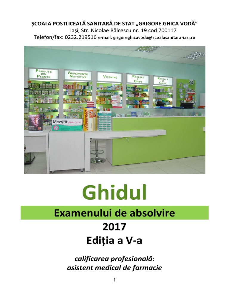 iulie 2017 ) n laboratorul de farmacie al colii i const n extragerea unui