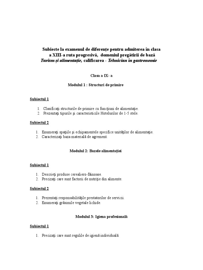 Subiecte la examenul de diferene pentru admiterea n clasa