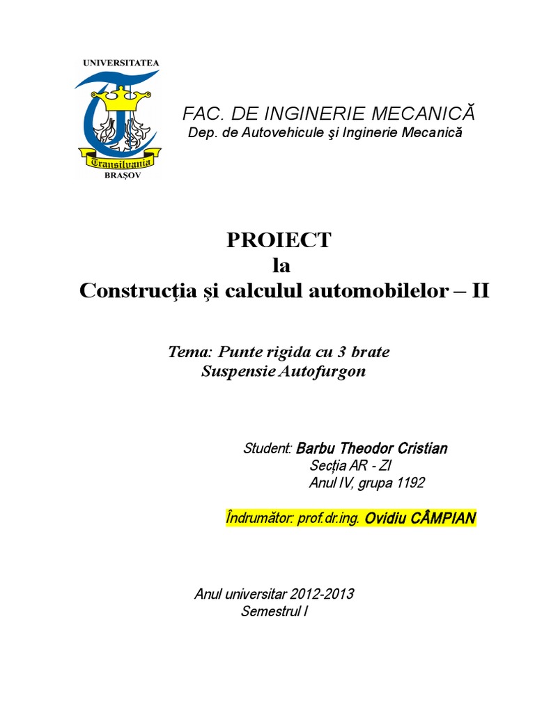Construcia i calculul automobilelor II