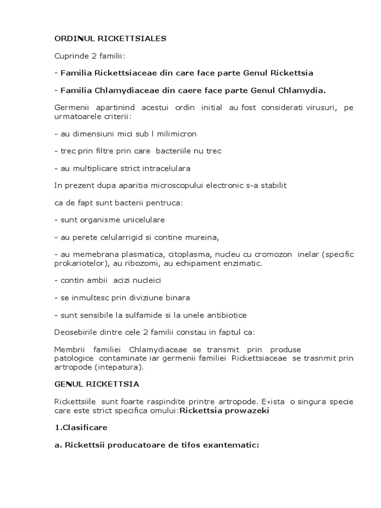 - Familia Rickettsiaceae din care face parte Genul Rickettsia