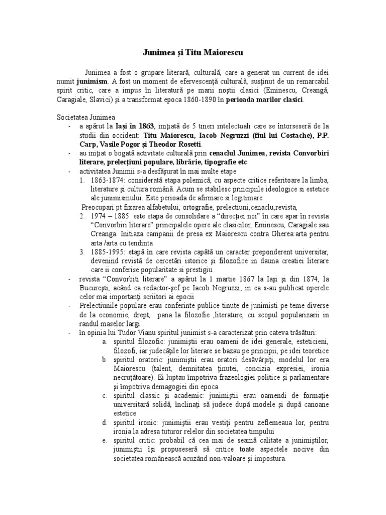 spirit critic, care a impus n literatur pe marii notii clasici (Eminescu, Creang,