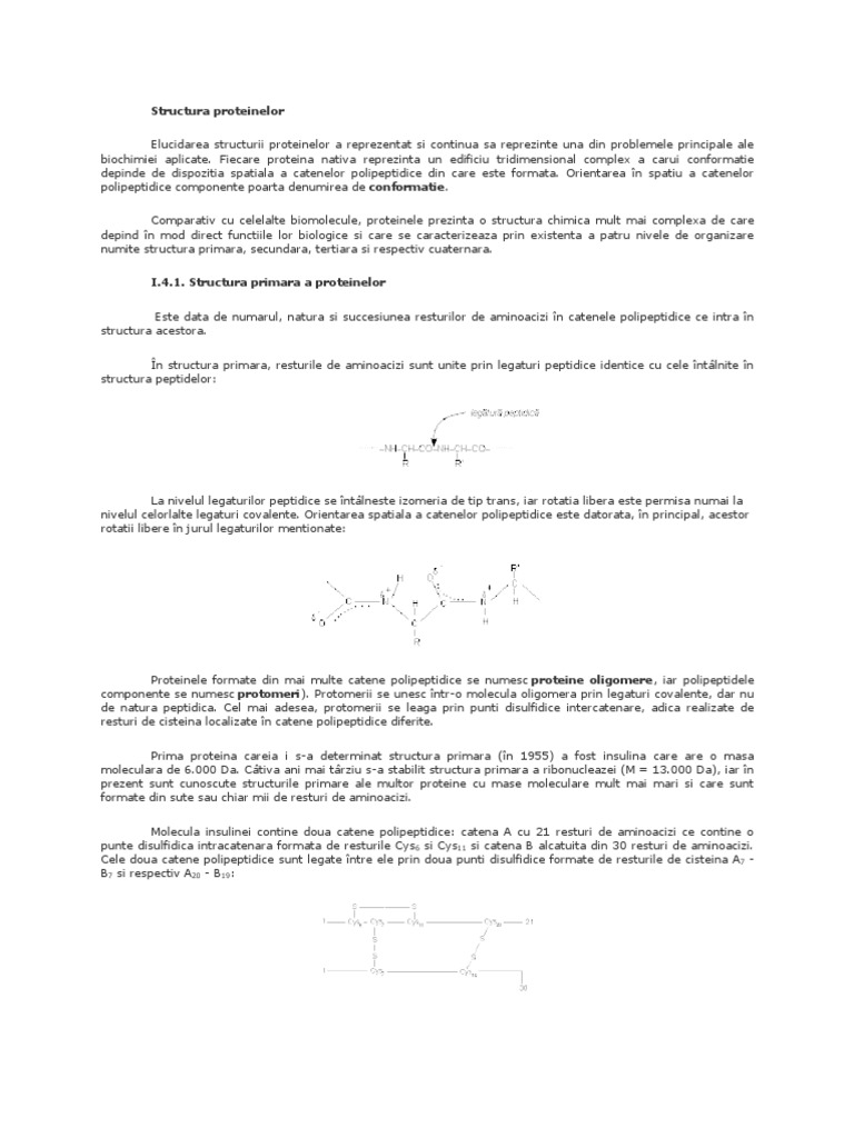 resturilor de aminoacizi precum si de succesiunea acestora n catenele polipeptidice componente. Acest nivel de