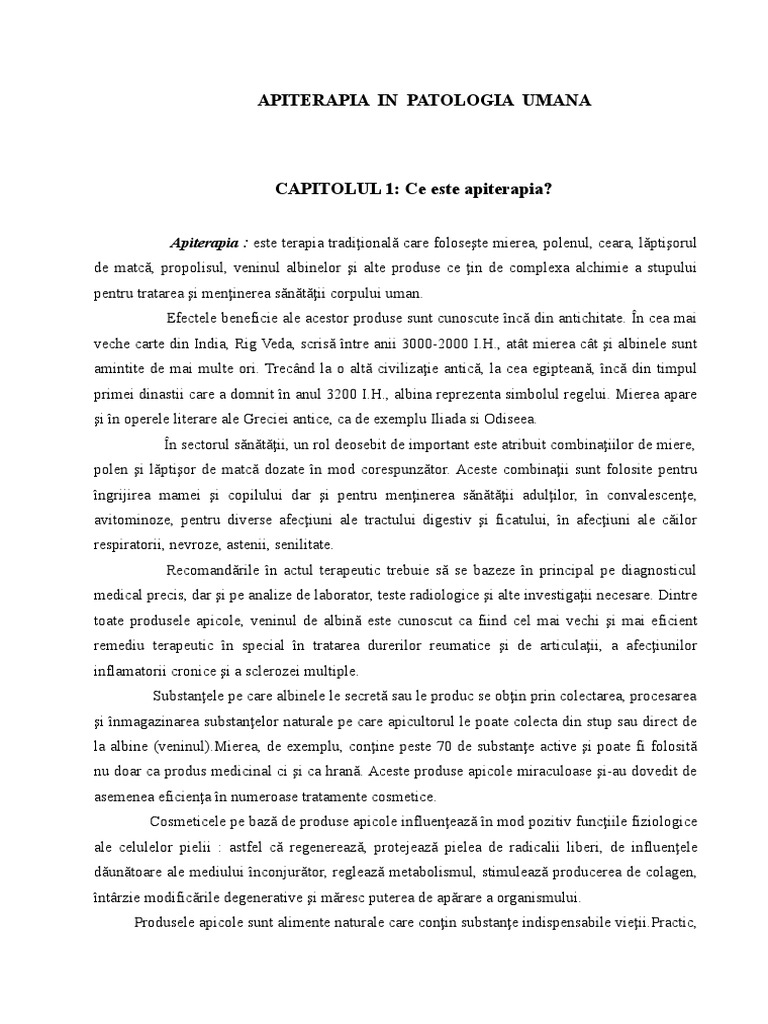 (mierea, polenul,ceara, propolisul, lptiorul de matc, etc.) n tratarea unei game largi de