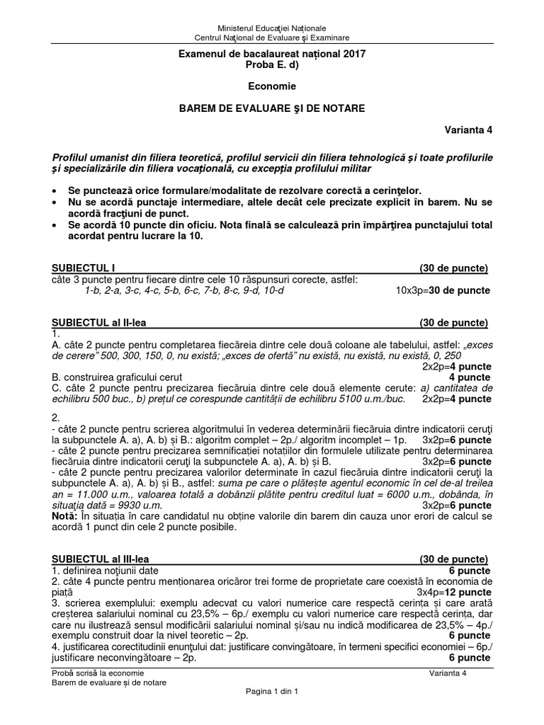 Nu se acord punctaje intermediare, altele dect cele precizate explicit n barem. Nu se