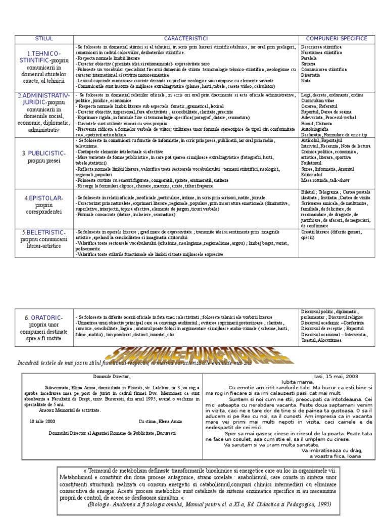 Incadrati textele de mai jos in stilul functional respectiv, urmarind caracteristicile enuntate mai sus