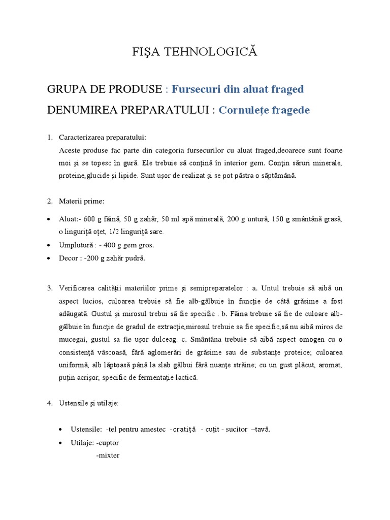 GRUPA DE PRODUSE : Fursecuri din aluat fraged