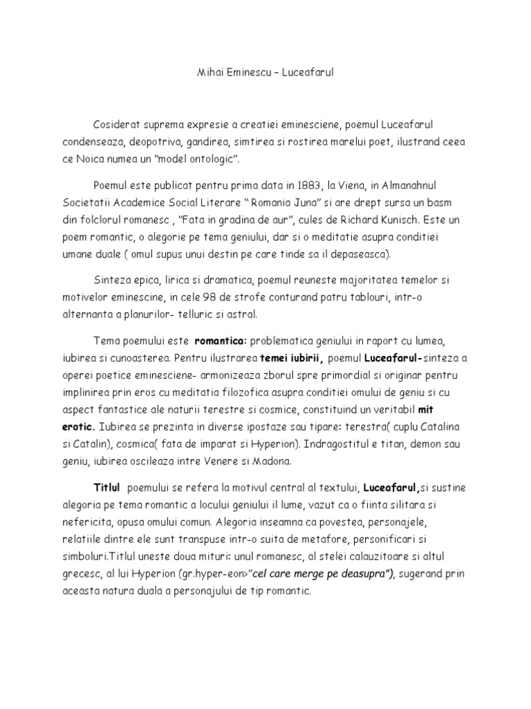 si Catalin), cosmica( fata de imparat si Hyperion). Indragostitul e titan, demon sau