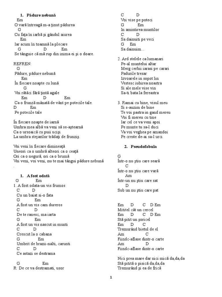 O var ntreag m-a inut pdurea G Em