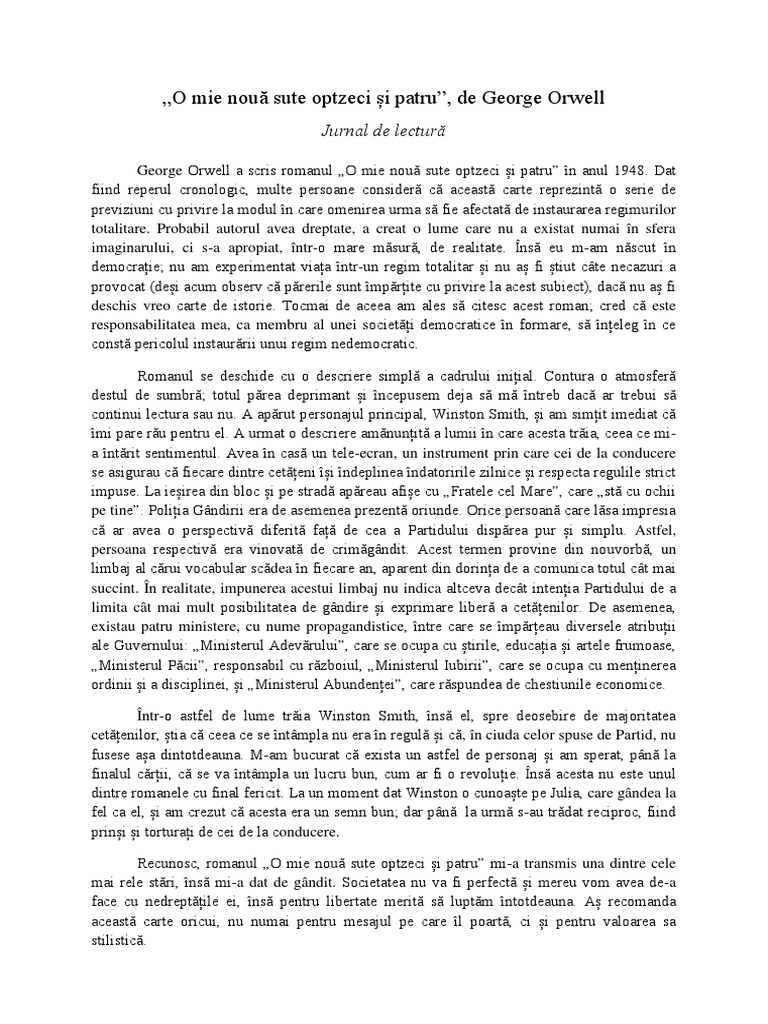 totalitare. Probabil autorul avea dreptate, a creat o lume care nu a existat numai n sfera