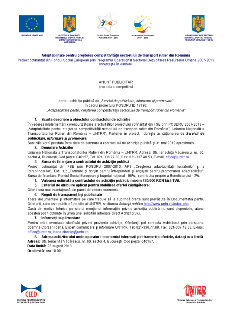 Ofertanţi, care este publicată pe site-ul UNTRR, secţiunea Achiziţii publice [Link]