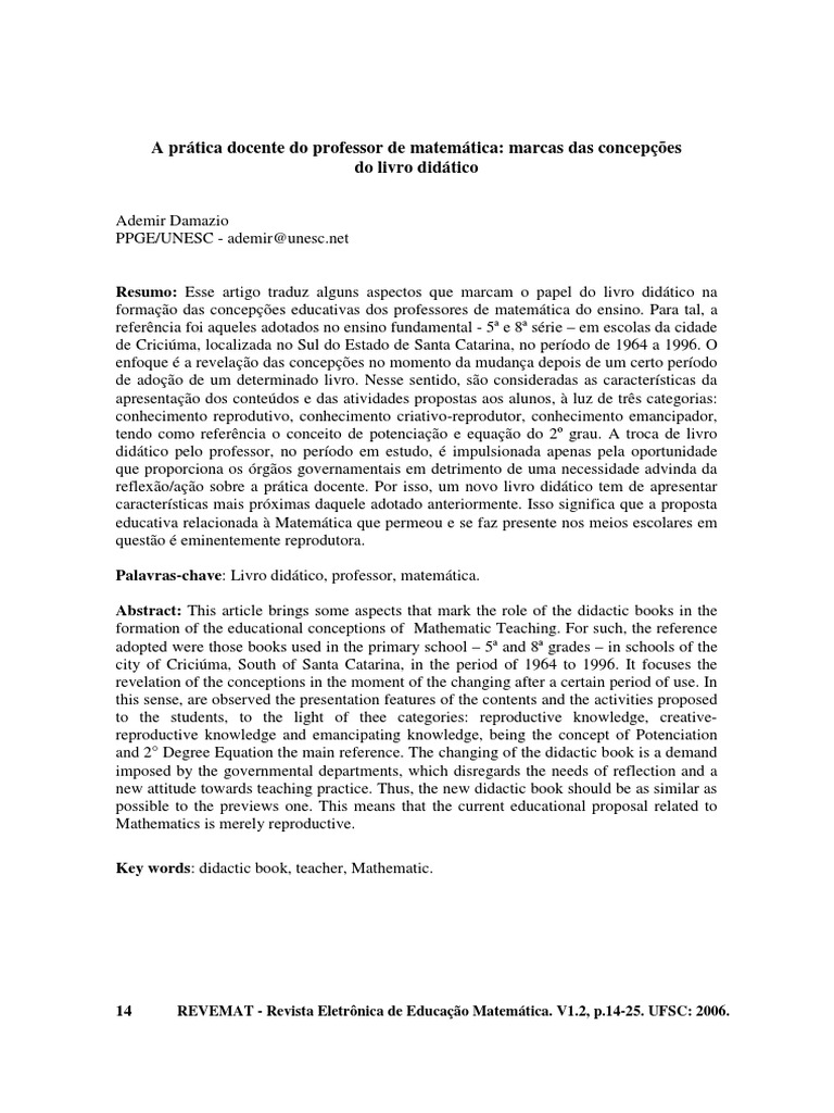 Resumo: Esse artigo traduz alguns aspectos que marcam o papel do livro didtico na