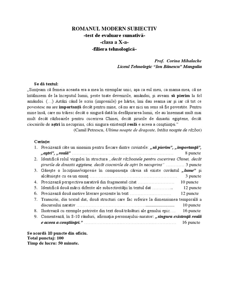 -test de evaluare sumativ-