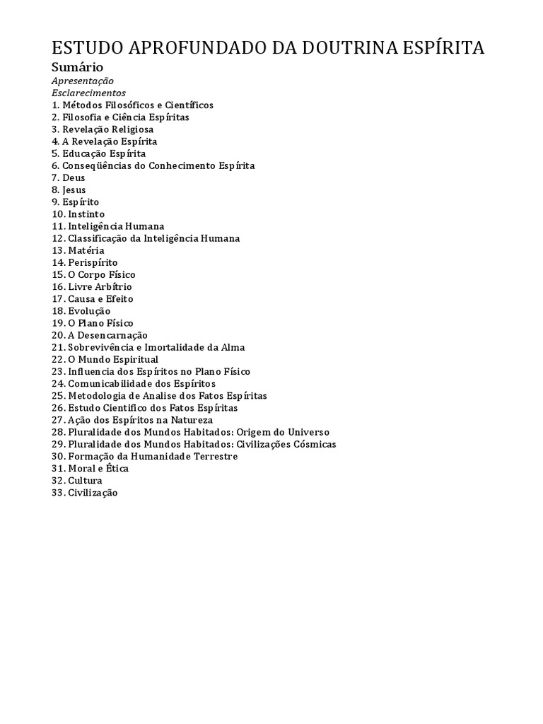 Importa destacar que Filosofia e Cincia Espritas e um programa de estudo esprita,