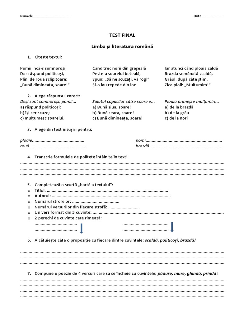 a) rspund politicoi; a) Bun ziua, soare! a) de la brazd