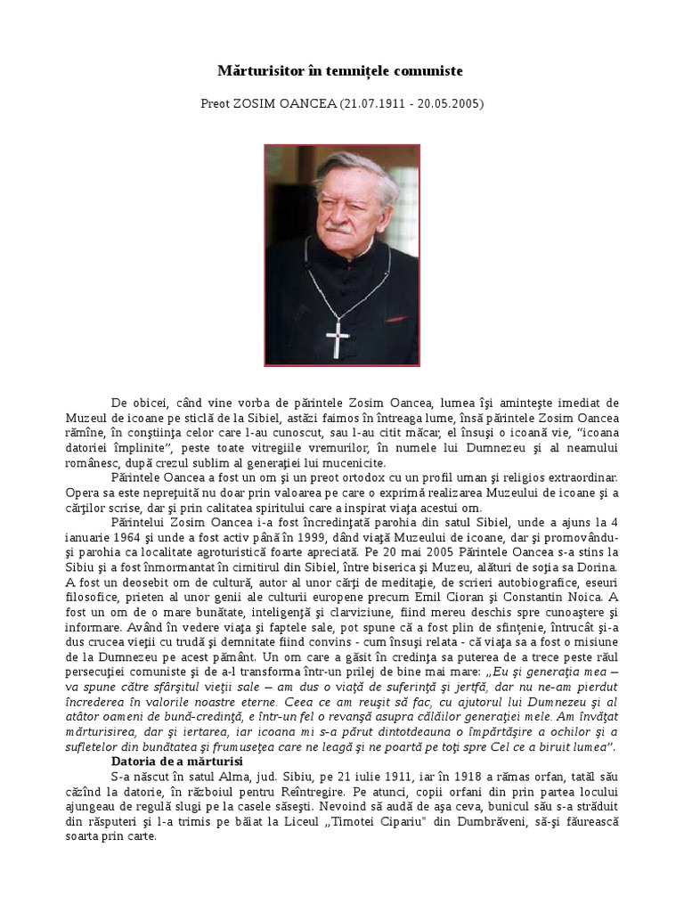 creatoare a tradiiei ortodoxe i a geniului nostru popular. Printele Zosim Oancea "a pus Sibielul pe