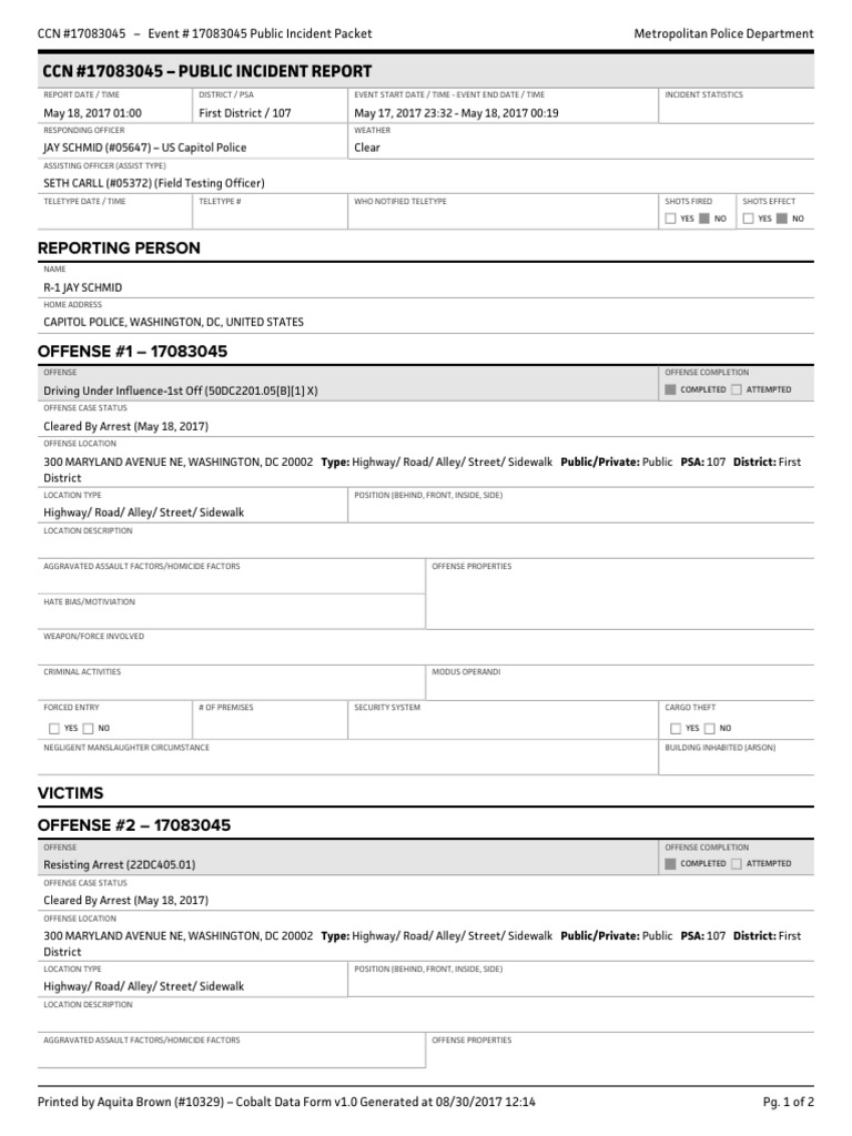 CCN #17083045 Event # 17083045 Public Incident Packet Metropolitan Police Department