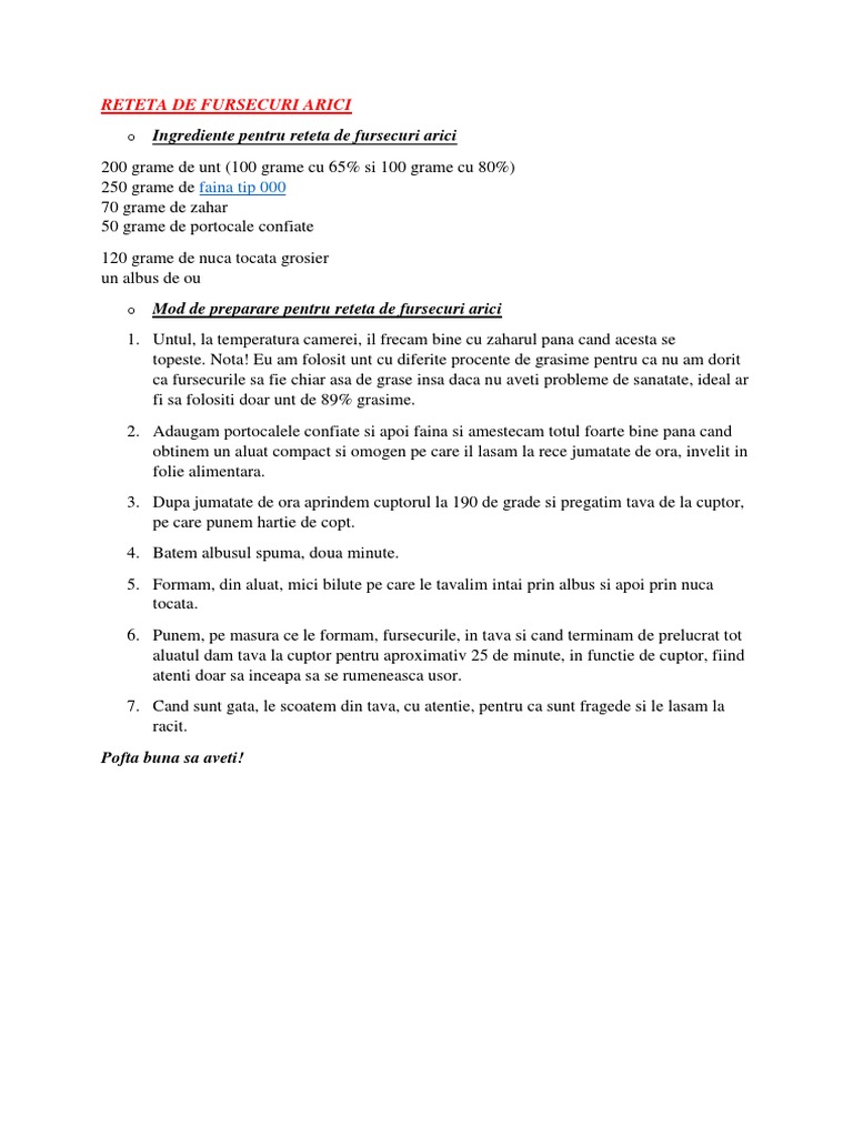 RETETA DE FURSECURI ARICI
