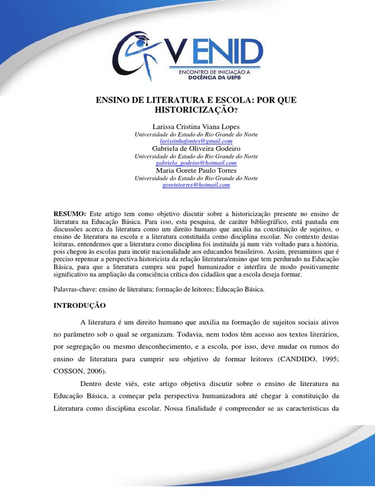 Universidade do Estado do Rio Grande do Norte larissinhafontes@gmail.com