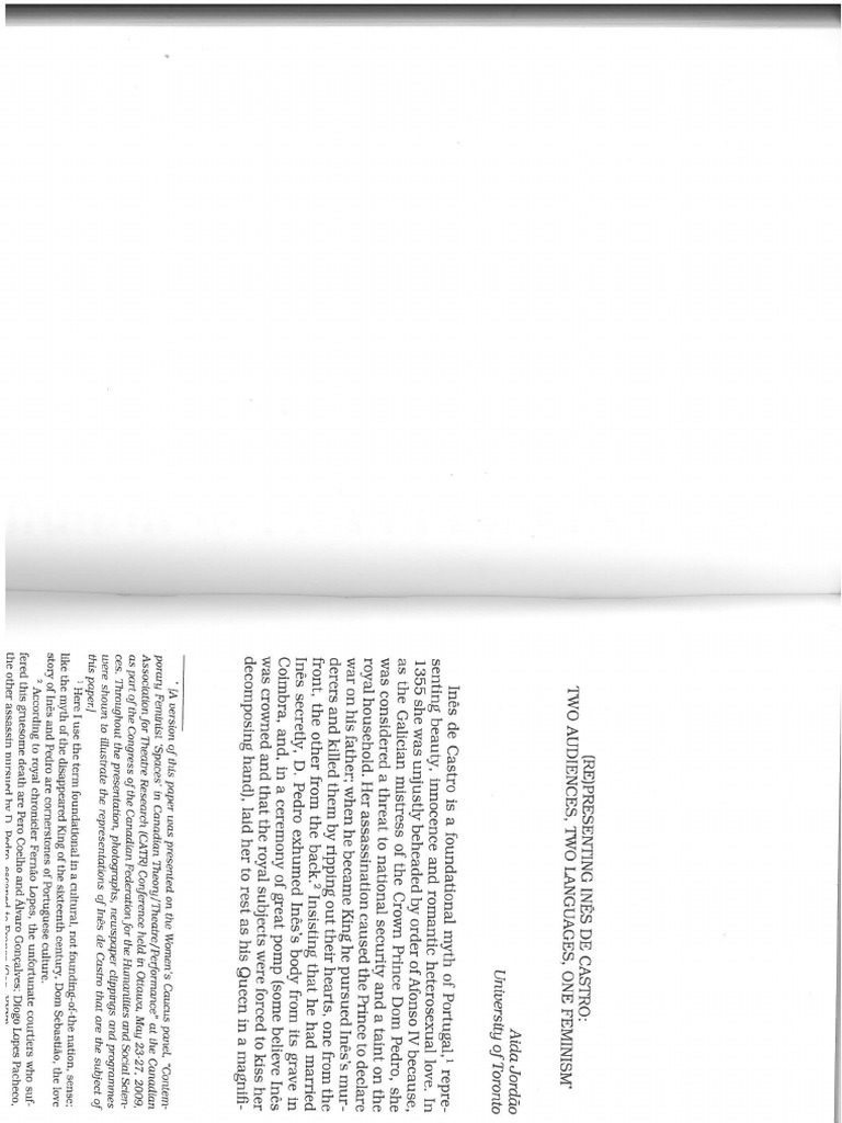 (Re)presenting Inês de Castro: two audiences, two languages, one feminism [por Aida Jordão]