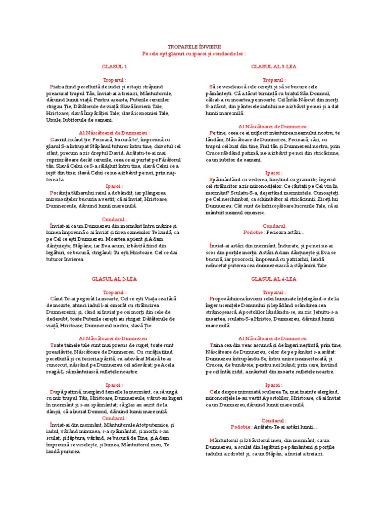 Pe cele opt glasuri cu ipacoi i condacele lor :