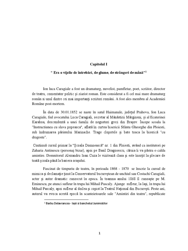 Opera lui I.L. Caragiale), iar pe de alta parte, aduce in prim-plan viata personajului.