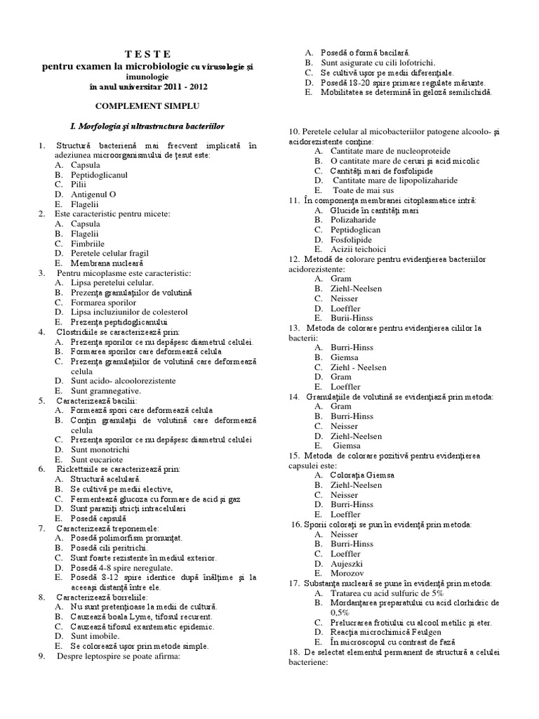 pentru examen la microbiologie cu virusologie i B. Sunt asigurate cu cili lofotrichi.