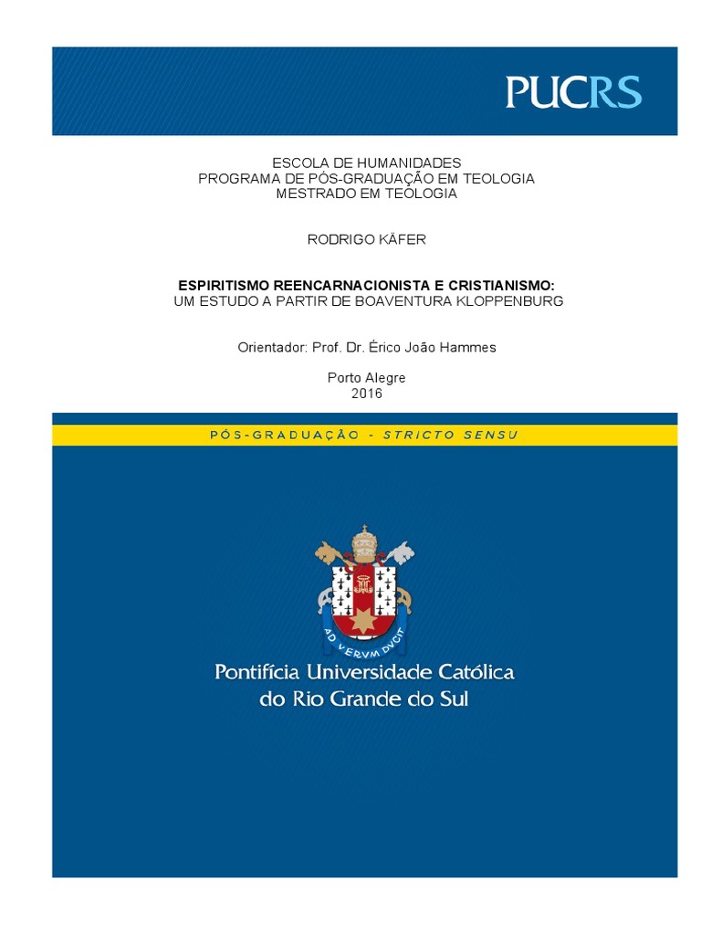 Entitled Reincarnation spiritism and Christianity: a study from Boaventura Kloppenburg, this