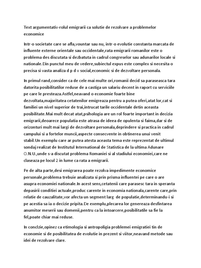 Text argumentativ-rolul emigrarii ca solutie de rezolvare a problemelor