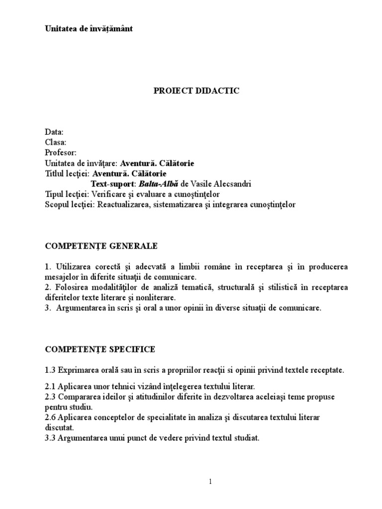PROIECT DIDACTIC