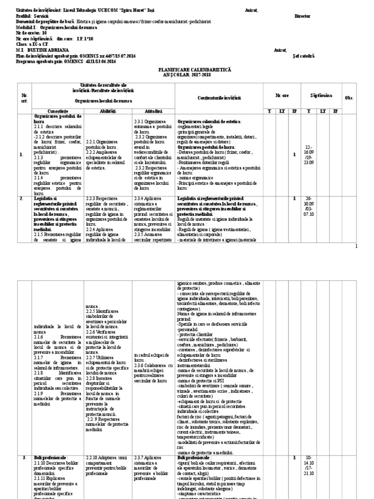 pedichiurist) . 2.2.2 Amplasarea vedereconditiile de -Dotarea postului de lucru ( frizer, coafor , 16.09