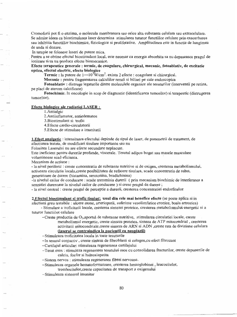 -efect analgezic : 2-4 J/cm2 in dureri musculare si 4-8 J/cm2 in dureri articulare