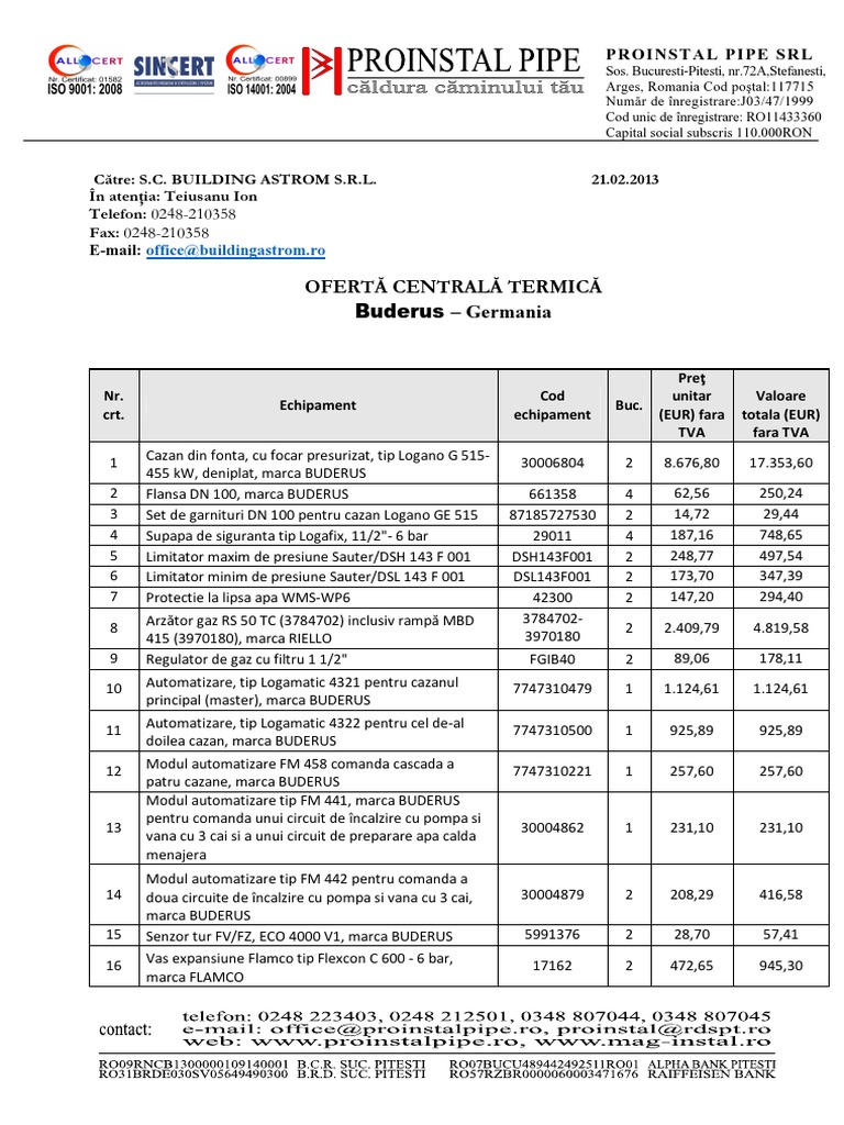 PREURILE din ofert se neleg ca fiind preuri de achizitie, exprimate n EUR fr TVA.