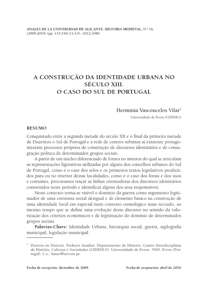 A construo da identidade urbana no sculo xiii. O caso do Sul de Portugal