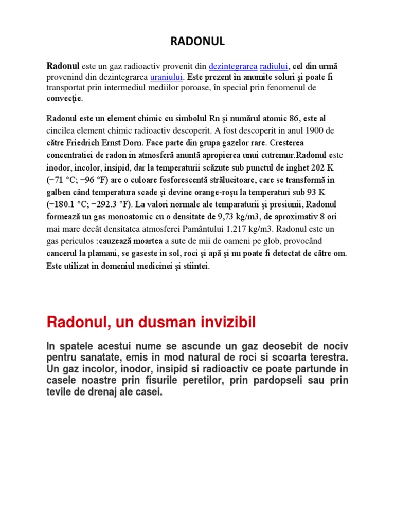 solurile din intreaga lume. Radonul este un gaz inodor, insipid si