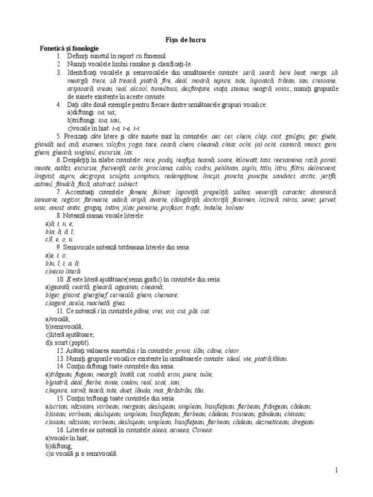 2. Numii vocalele limbii romne i clasificai-le.