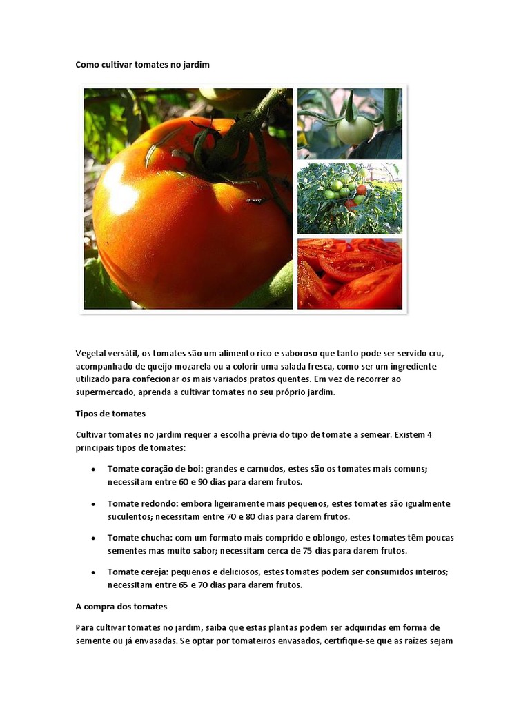 Cultivar tomates no jardim requer a escolha prvia do tipo de tomate a semear. Existem 4