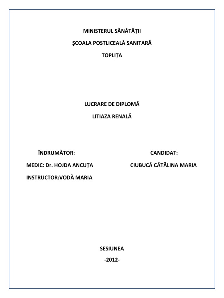 care Litiaza renal mi s-a prut potrivit ca subiect al lucrrii.