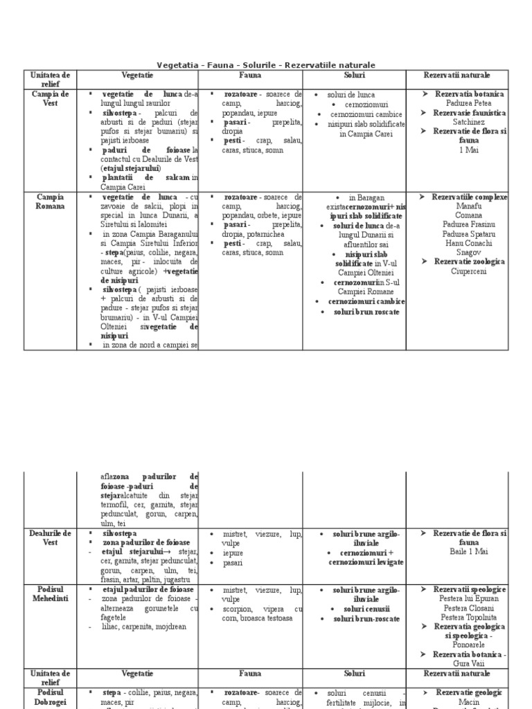 Vegetatia - Fauna - Solurile - Rezervatiile naturale