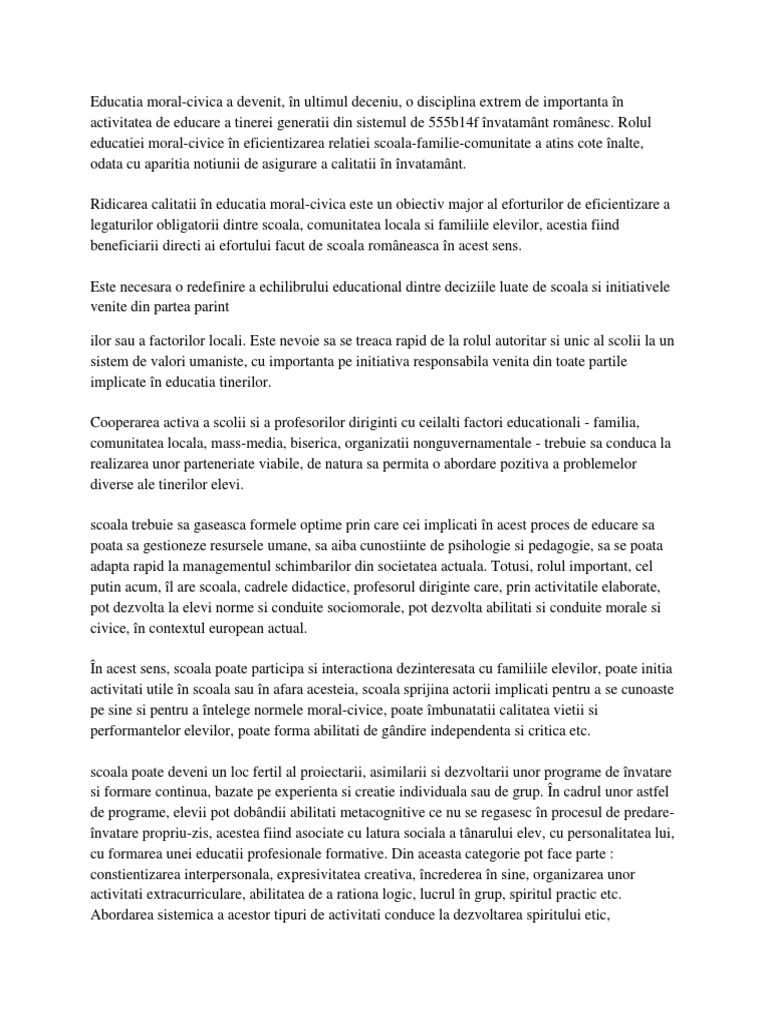 cetatean. Educatia civica si morala va dezvolta constant un mod de gndire si va dezvolta