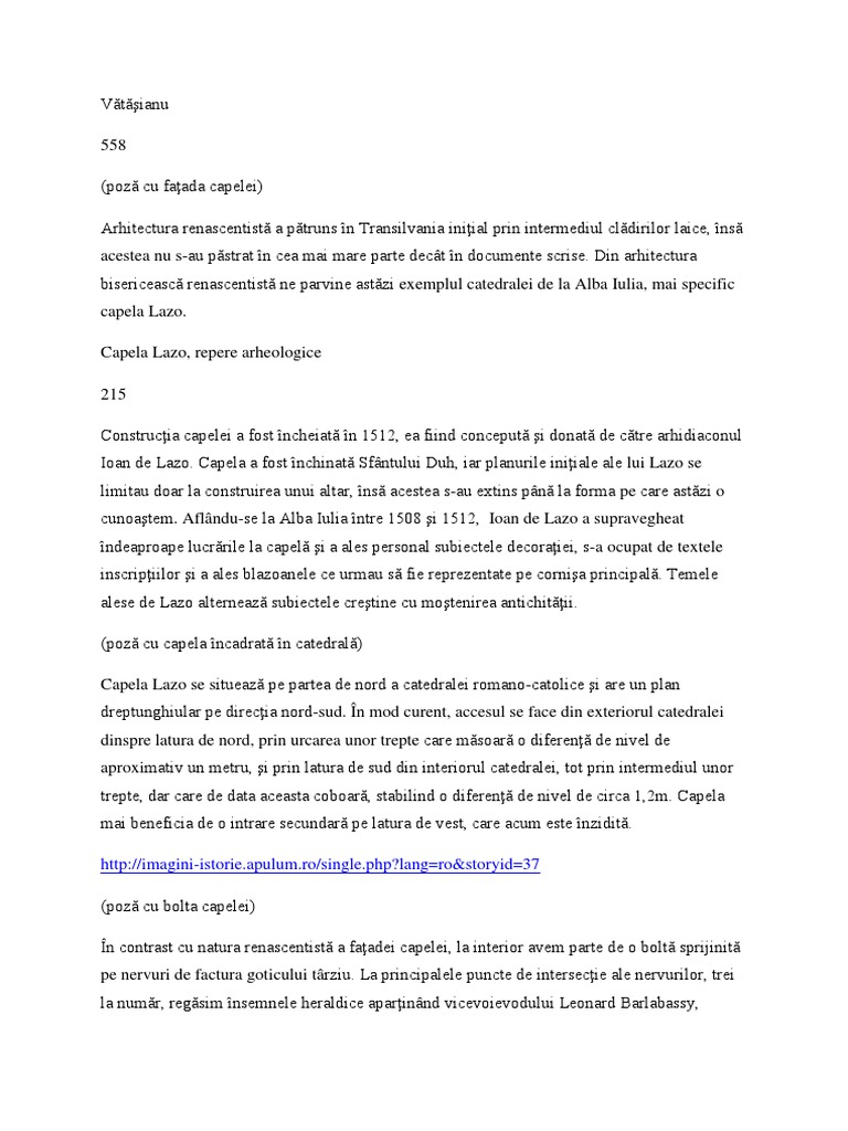 cunoatem. Aflndu-se la Alba Iulia ntre 1508 i 1512, Ioan de Lazo a supravegheat