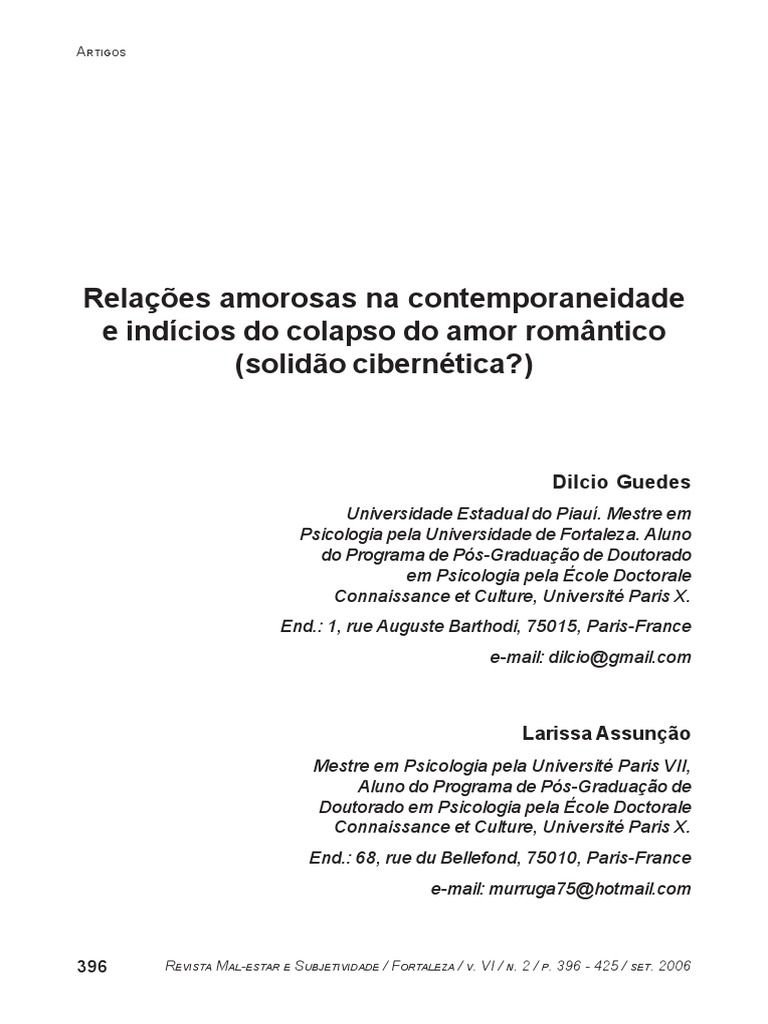 ARTIGOS RELAES AMOROSAS NA CONTEMPORANEIDADE E INDCIOS DO COLAPSO DO AMOR ROMNTICO