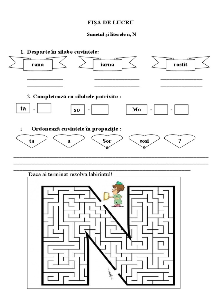 Sunetul i literele n, N
