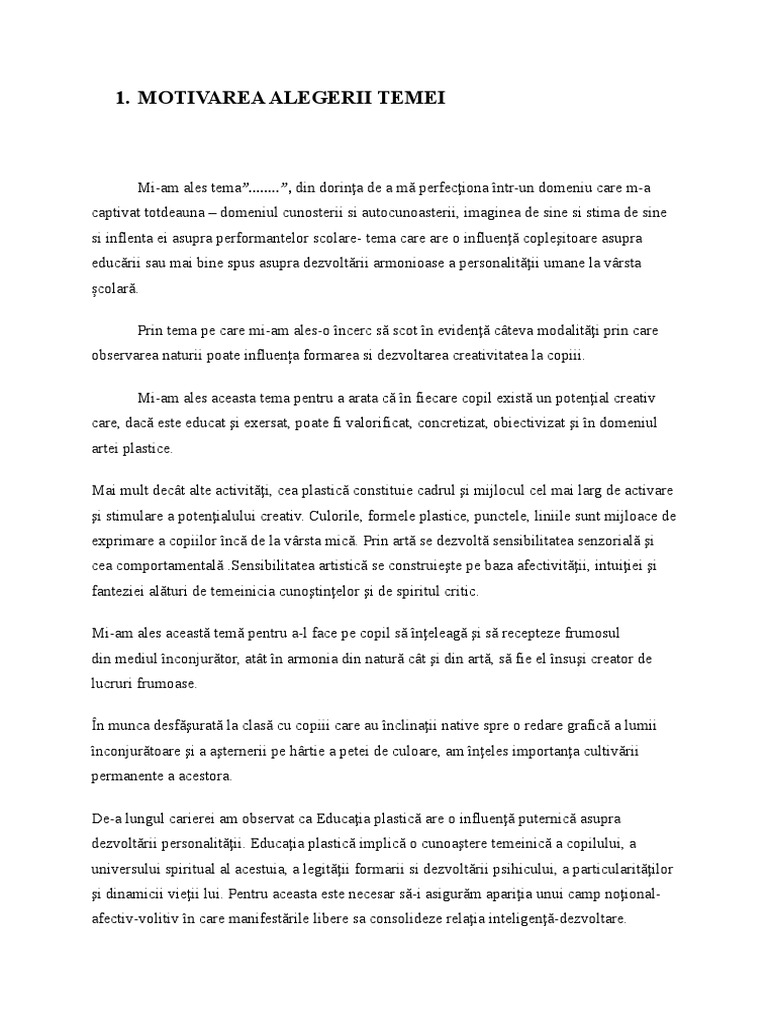 Mi-am ales aceasta tema pentru a arata c n fiecare copil exist un potenial creativ