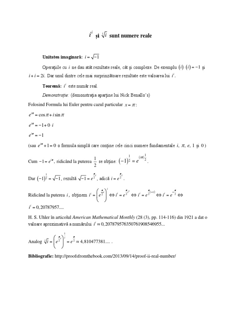 Teorem: i i este numr real.