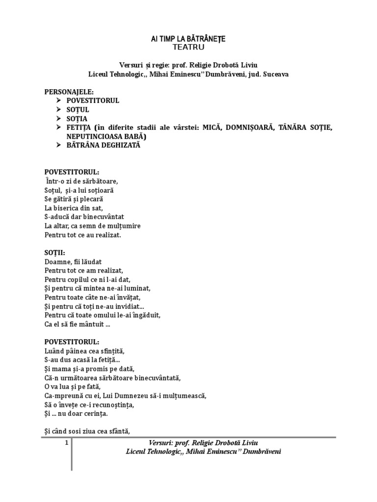 Versuri i regie: prof. Religie Drobot Liviu